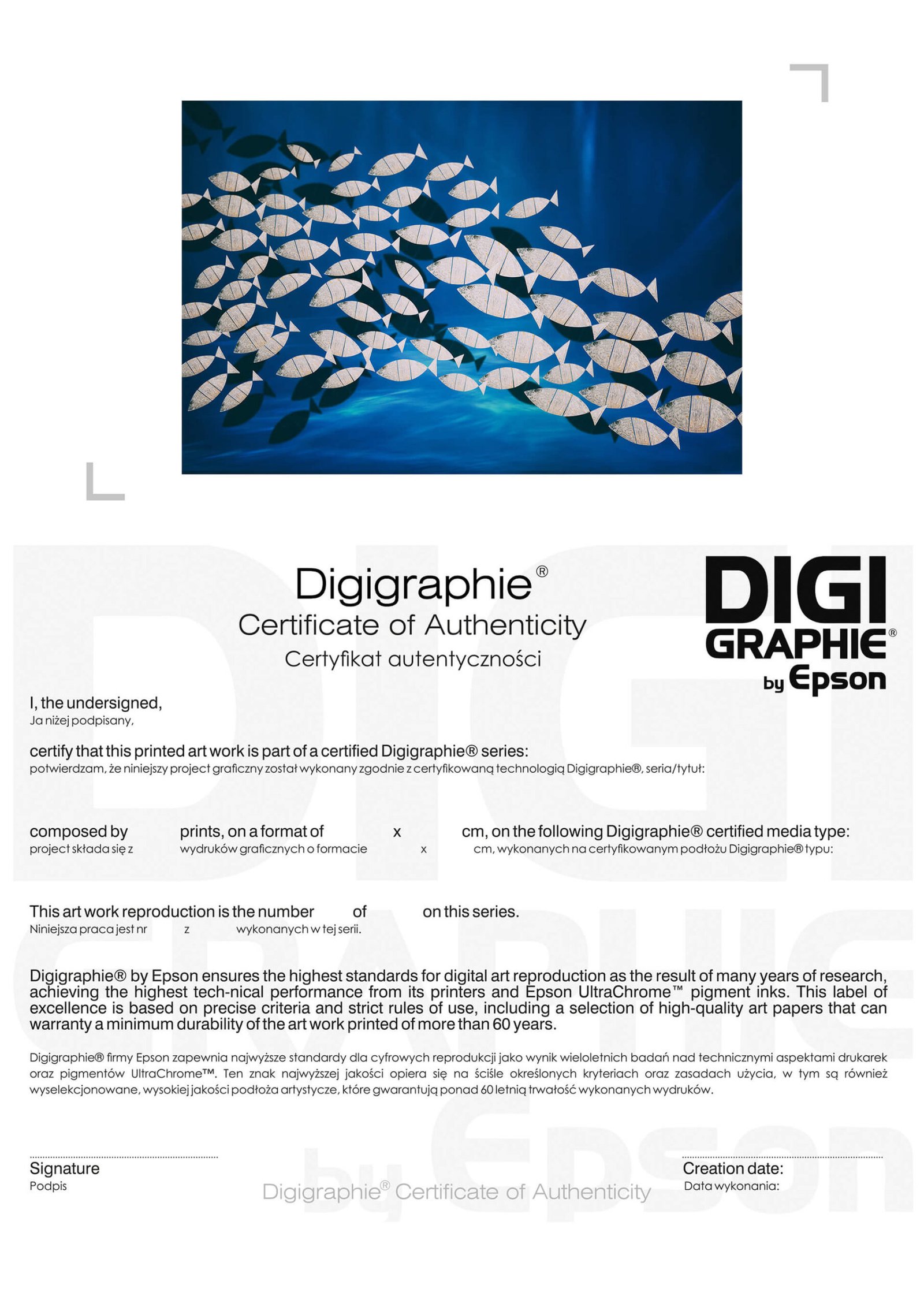 | Certyfikat: | Certyfikat Autentyczności DigiGraphie® + sygnatura autora |
